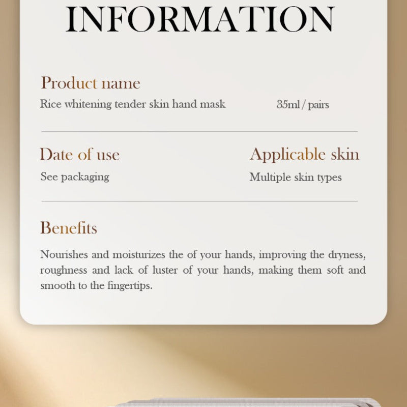 - Product Name: Rice Whitening Tender Skin Hand Mask