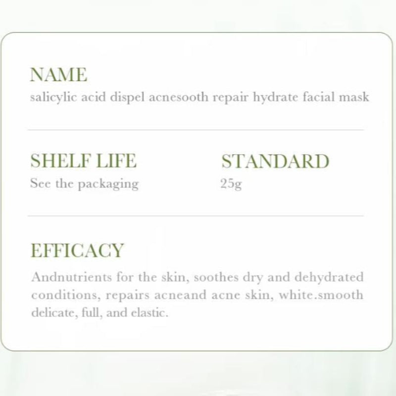 - Product Name: Salicylic Acid Dispel Acne Soothe Repair Hydrate Facial Mask